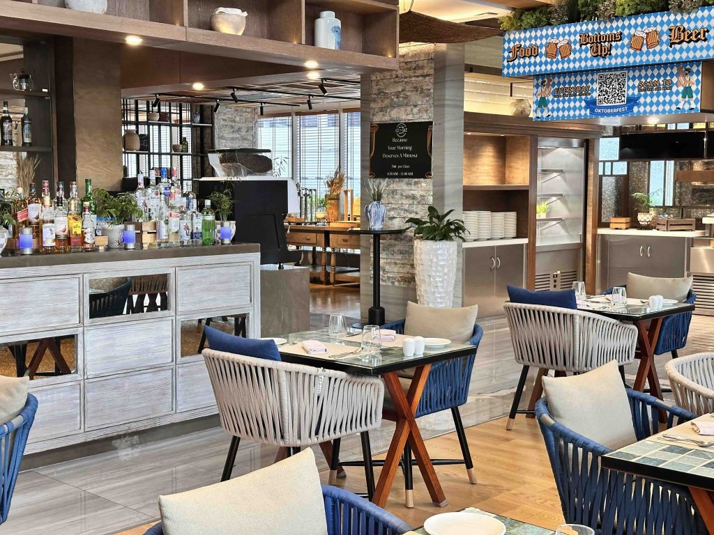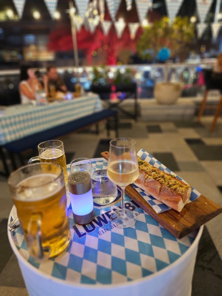 Its the first Oktoberfest hosted at Lo+Cale, which has transformed its strategically placed outdoor space into a Bavarian-style beer garden with communal tables, blue and white flags and décor, and string lights, while still delivering classic marina views.
