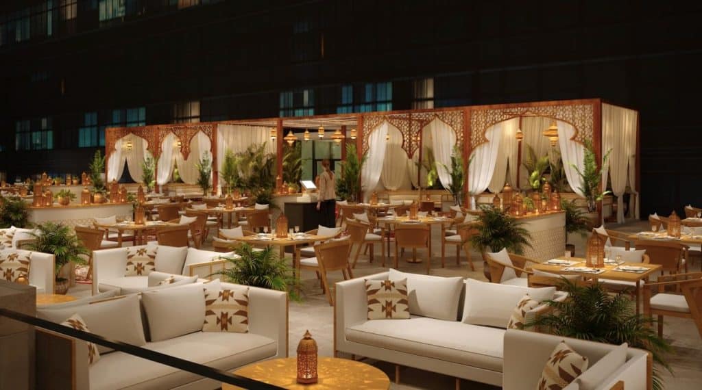 If you like your iftar with a side of grandeur, Al Massa brings the classic Ramadan tent experience with a polished hotel twist. Expect a rotating buffet that balances familiarity and variety, the kind of spread where everyone at the table finds their “this is the one” dish. Live cooking stations keep things fresh, while traditional décor and Arabic coffee give the evening that comforting Ramadan rhythm. A live qanun performance adds a gentle soundtrack that feels festive without overpowering the moment. It’s also a strong pick for large group and corporate iftars thanks to dedicated banquet packages (and a generous minimum guest structure for bigger gatherings). Bonus: there’s an early bird discount in the first week, which is basically the Ramadan equivalent of arriving early for the best seat.