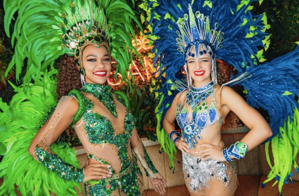 A high-energy, Latin-charged celebration with samba dancers, DJs, live saxophone and two seating options including early dining or a full late-night countdown.