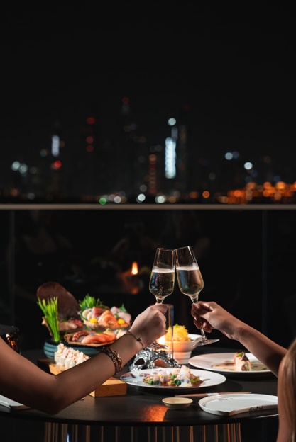 The entertainment is world-class from the moment you arrive. Powerful Taiko drumming sets the beat , followed by live DJ sets and captivating dancers who drive the energy toward the countdown. Akira Back’s striking lighting, curved architecture and open terrace views intensify the experience, creating the kind of electricity people travel for on New Year’s Eve. When midnight approaches, the terrace becomes a front-row seat to the Palm Jumeirah fireworks, delivering one of the most striking views of the night.