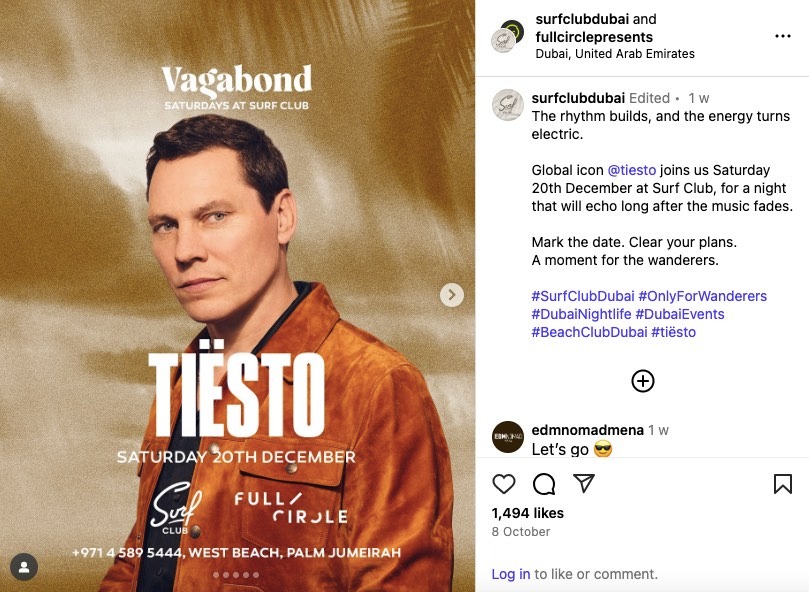 This isn’t just another DJ booking. Tiësto’s presence signals Dubai’s continued ascent as one of the global hubs for elite electronic music. After headlining mega-festivals like UNTOLD Dubai in 2024, Tiësto’s show at Surf Club will bring that festival energy into a more refined beach-club environment, with a sunset, ocean backdrop, plus nightclub caliber.